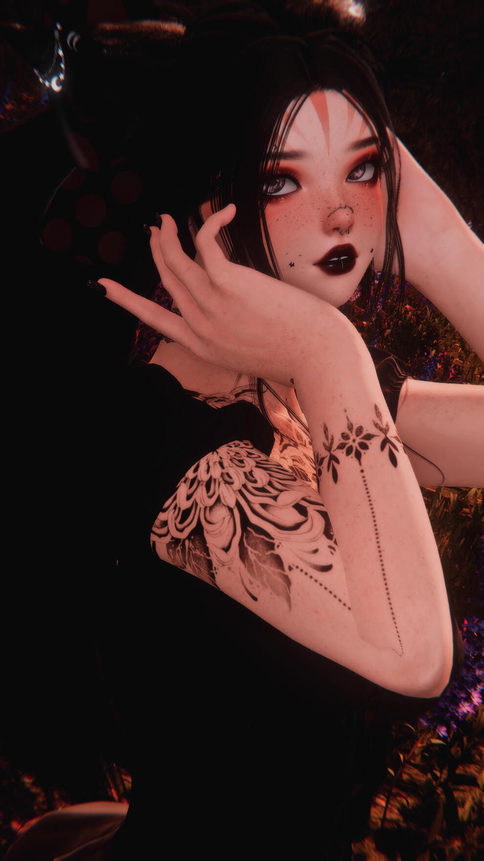 ㅤrelationship statusㅤㅤMimi and Noir have an unusual, yet magnetic dynamic that usual standards can't currently define. The cybernetic male's entire existence alludes to the auspice, prompting curiosity about him and his tale. The two of them would often throw quips at each other, with Mimi's being flirtatious and his more scolding in nature, which she believes is because he's simply looking out for her well-being. Despite the stark contrasts in personality, Mimi has developed strong affections and respect for him. In their moments together, she is able to get glimpses of various expressions on his impassive face.